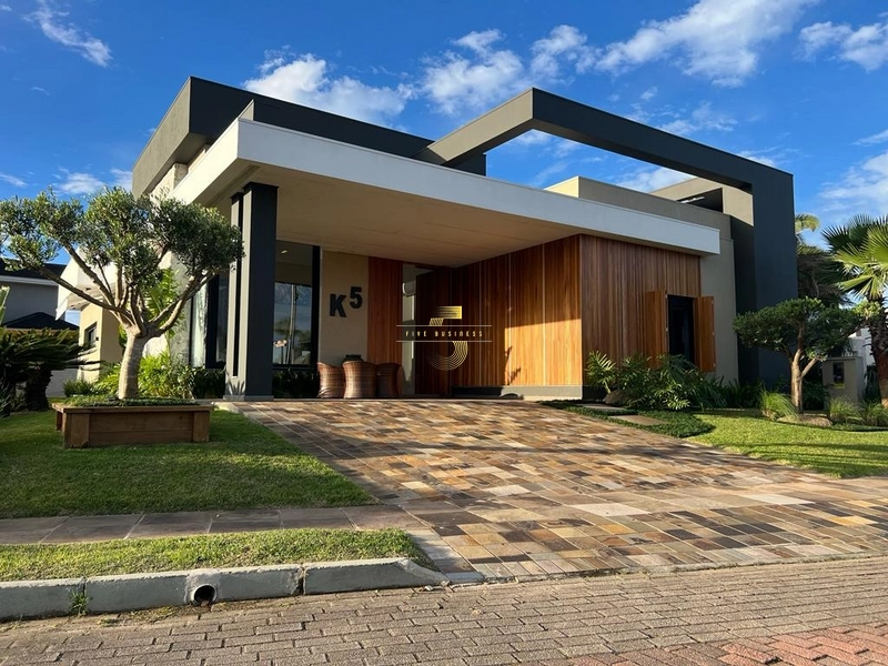 Maravilhoso sobrado com pé direito duplo, ótima localização, construção privativa de 426m² e elevador. Composto por 5 suítes, sendo 1 térrea e 1 master com banheira de hidromassagem, cuba dupla e closet. Amplo living 3 ambientes com lareira, cozinha com ilha e espaço gourmet com churrasqueira e forno a lenha. Estar íntimo, lavabo, lavanderia, varanda, sacadas com linda vista, piscina em concreto aquecida com borda infinita, ar condicionado, paisagismo, sistema de captação de água da chuva para irrigação, poço artesiano e abrigo para 2 carros. Finamente mobiliado e decorado.