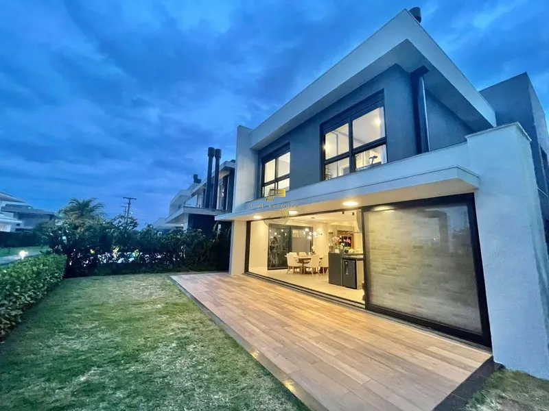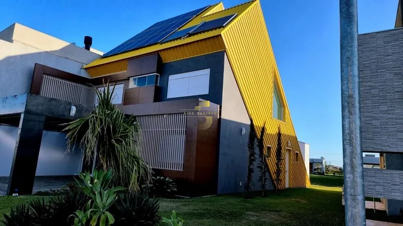 Excelente casa térrea com pé direito alto, projeto arrojado e 199m² privativos. Possui amplo living em 2 ambientes com lareira, cozinha com ilha e churrasqueira, dispõe de 4 suítes, sendo 2 americana, lavabo, lavanderia, pátio e abrigo para 2 carros.