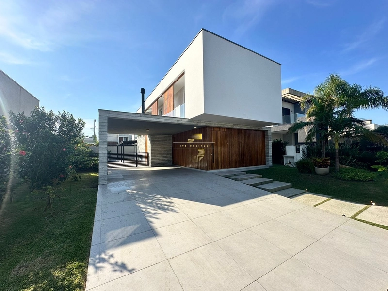 Linda casa térrea com arquitetura contemporânea, pé direito alto e 175m² privativos. Possui amplo living em 2 ambientes com lareira, cozinha com ilha e churrasqueira, dispõe de 4 suítes, 2 lavabos (interno e externo), lavanderia, decks de madeira, paisagismo com irrigação automática, ambientes climatizados, e vaga para carro.