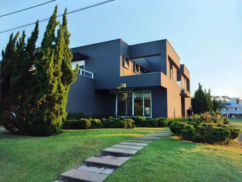Encantador sobrado de esquina à beira do lago, finamente mobiliado e decorado, com 621,59 m² de área privativa. A residência dispõe de 5 suítes, incluindo uma no térreo e uma magnífica suíte master com lareira, closets individuais para ele e para ela. Conta ainda com 2 banheiros completos, lavabos, espaçoso living com dois ambientes e lareira, espaço gourmet integrado com mesa de sinuca, bar e área de jogos. Um charmoso pergolado fechado de 100 m² oferece o cenário perfeito para festas e eventos. Cozinha equipada, área de serviços, dependência completa para funcionários, elevador, porte-cochère e uma elegante piscina aquecida complementam este imóvel exclusivo, que une sofisticação, conforto e uma vista deslumbrante para o lago.