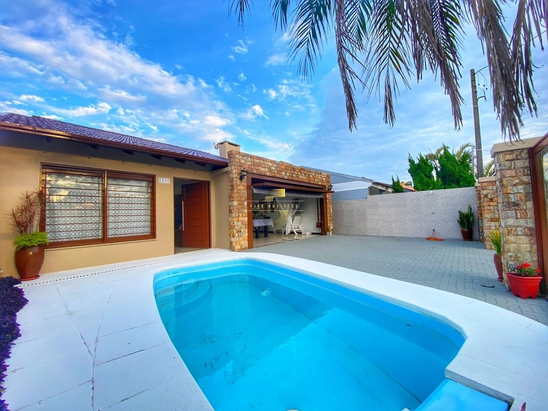 Com 200m² de área construída, este belíssimo imóvel une conforto, sofisticação e praticidade em cada detalhe. Conta com 4 dormitórios, sendo 2 suítes, 2 banheiros sociais e lavabo, sala de estar com lareira, sala de jantar, cozinha americana mobiliada, sala de TV, varanda, área de serviço e depósito. Para momentos de lazer, dispõe de churrasqueira, espaço gourmet, quintal espaçoso com piscina e ambientes integrados para receber amigos e familiares. O acabamento em porcelanato traz elegância, enquanto o ar-condicionado, sistema de alarme, portão eletrônico, aquecimento solar e água quente em toda a casa garantem comodidade e segurança. Um lar perfeito para quem busca qualidade de vida e bem-estar.